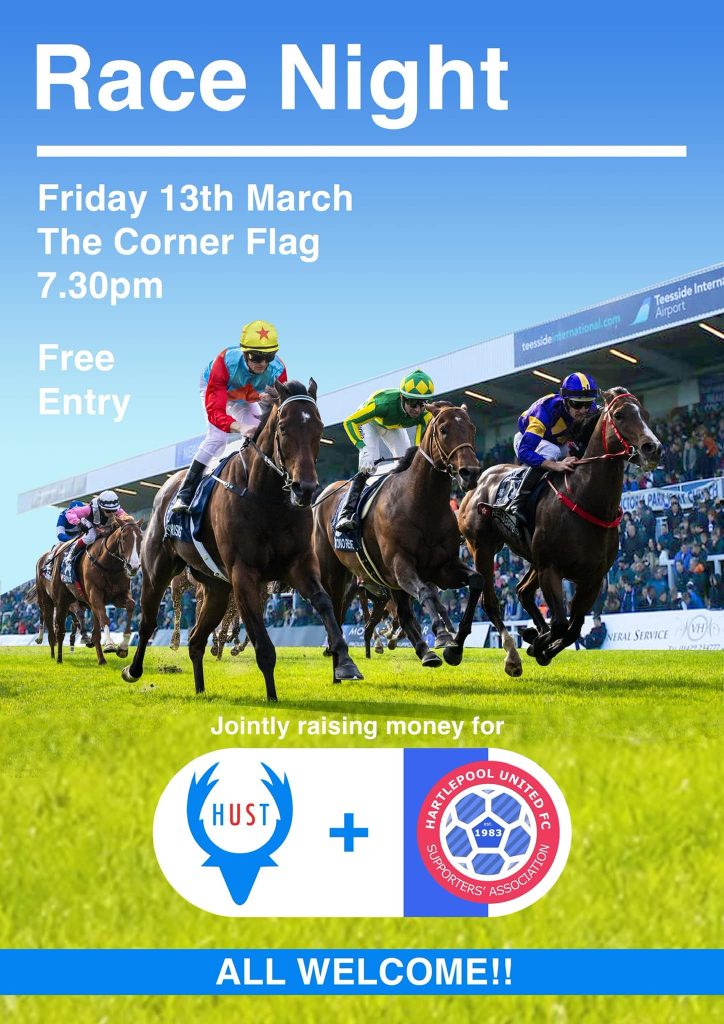 It’s Cheltenham week so why not join us at the Corner Flag for a jointly organised HUST and HUSA race night. Celebrate the new era at Pools with fellow fans and enjoy the Flag’s finest draft and some horse related fun.